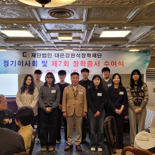 7회_2025년 대은강완석장학재단 제7회 장학증서 수여식 페이지 정보 작성자 대은강완석장학재단 댓글 0건 조회 1,299회 작성일 25-02-24 11:06 본문 대은강완석장학재단 제7회 장학증서 수여식입니다. 장학생 선발을 진심으로 축하 드립니다. 검색 목록 댓글목록 댓글목록 등록된 댓글이 없습니다.