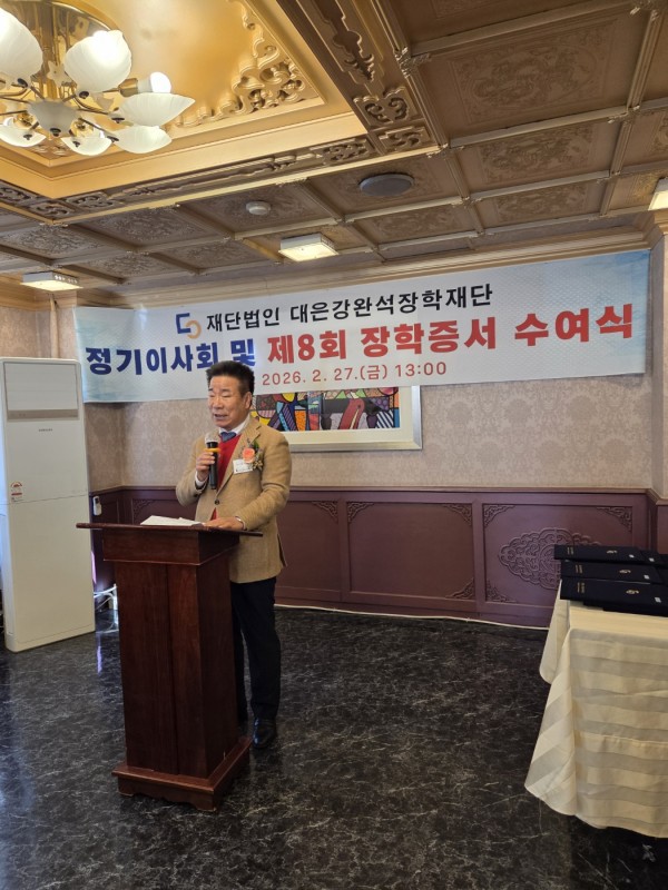 8회_2026년 대은강완석장학재단 제8회 장학증서 수여식 페이지 정보 작성자 대은강완석장학재단 댓글 0건 조회 202회 작성일 26-03-03 13:52 본문 대은강완석장학재단 제8회 장학증서 수여식입니다. 장학생 선발을 진심으로 축하 드립니다. 목록 댓글목록 댓글목록 등록된 댓글이 없습니다.